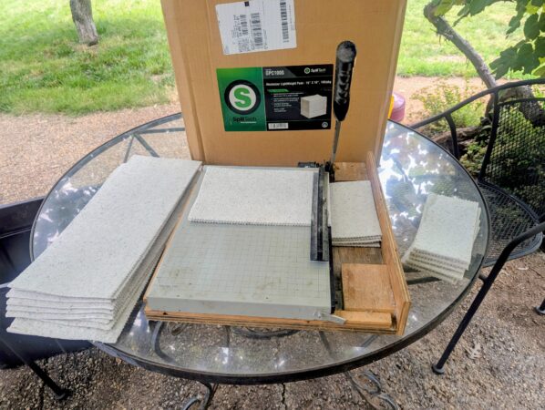 I get suggestions from all over the world for absorbent matrices to test. So come autumn, I rustled up enough “leftover” colonies with elevated mite counts to run a small comparative trial. I wanted to compare Maximizer strips to ShamWow towels, and to New Zealand chipboard (cardboard) hung strips. In addition, since New Zealanders typically use a higher-glycerin 1:1.5 ratio, I gave that ratio a try on both the hung chipboard and the Maximizer strips.
