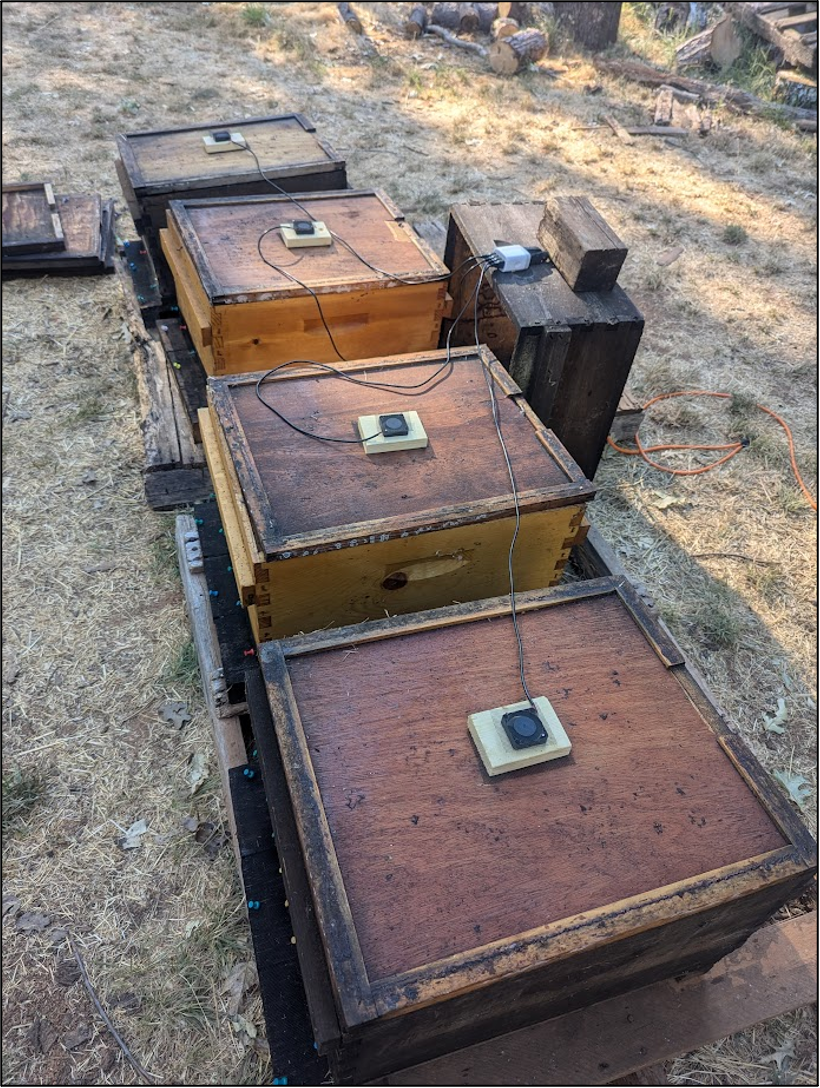 Once trained to the scent, we could place trays of scented cotton (without any syrup) as attractants to the hives (Figure 6).  We intentionally did not provide a sugar reward, since we did not want a bee that made it to the scent to recruit other foragers to that particular location.