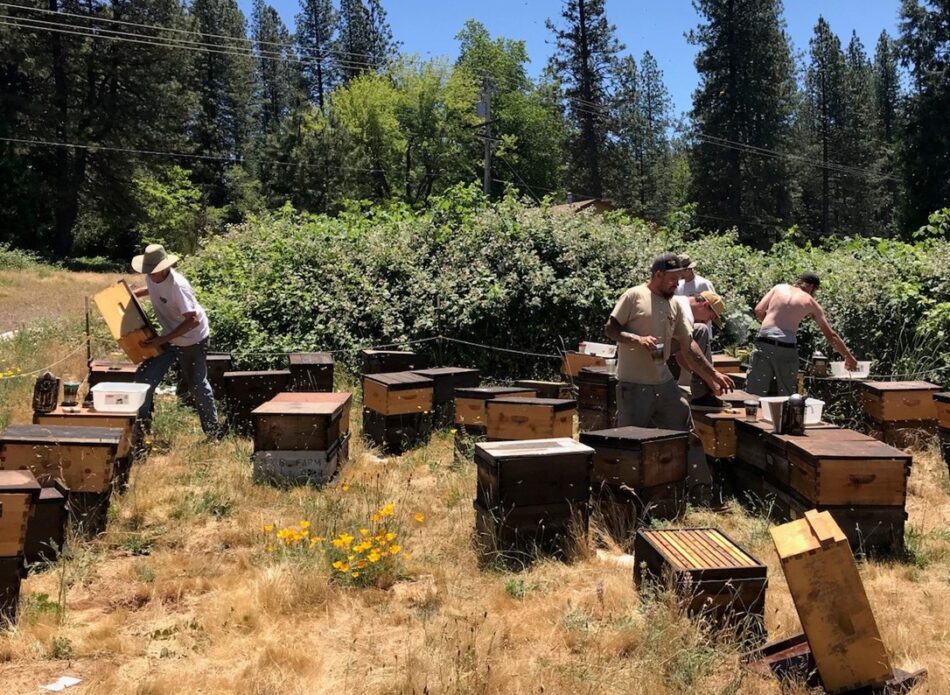 Fig. 4 Coming back from almonds, we flood the landscape with our drones, and give away free queen cells to all our neighbors. We also stock a separate isolated mating yard with our drone mothers.