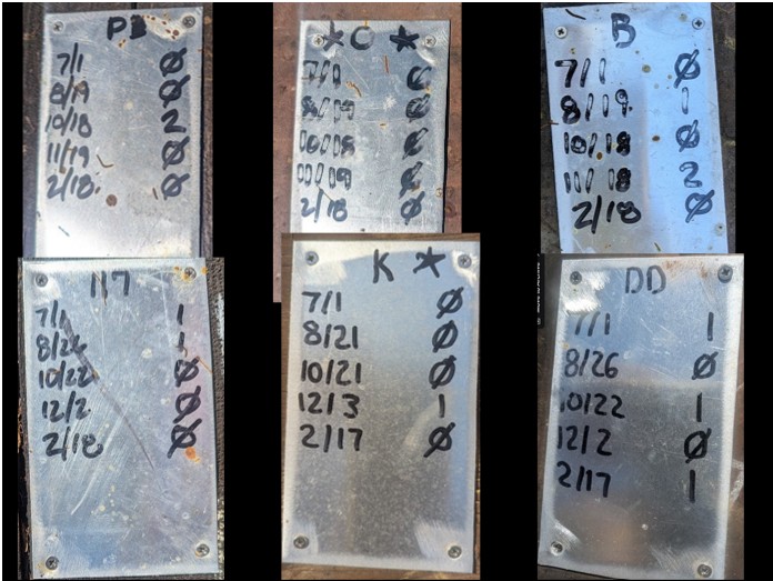 Fig. 10 In the last few years, in some yards we’ve needed to wait until August or later until enough colonies had counts above 1 to make selection. In those yards, I’ve just told the crew to just label the ten best zero-counts as potential breeders, and treat the rest.
